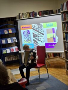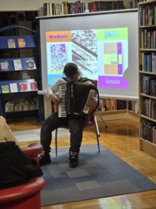 U četvrtak, 23. listopada 2025. naši učenici Karlo Petek i Vid Špiljak svojom glazbom na harmonikama uveličali su predstavljanje knjige arhitekta Krešimira Rogine “Šarenilo, šarada” u Narodnoj knjižnici Hum na Sutli u sklopu Mjeseca hrvatske knjige.